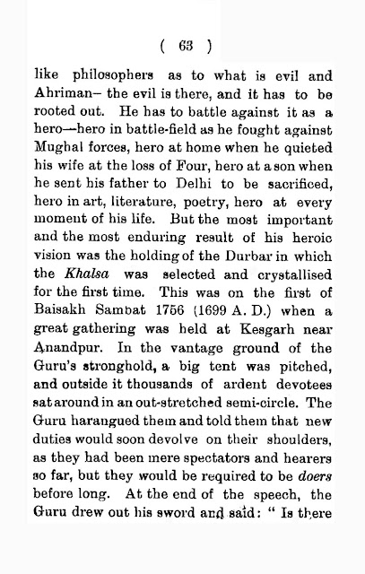 The tract "Sri Guru Gobind Singh ji - Being Some Unwritten Leaves In The Life Of The Guru" was written by Sher Singh, MSc, Kashmir, on December 1, 1933, and published by Jaidev Singh Joginder Singh, Amritsar. It is a companion-tract to Dashmesh Darpan penned by the author and published by Sikh Religious Tract Society, Tarn Taran.