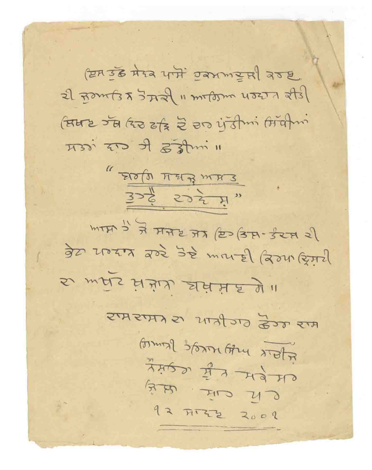 Dharnaa da Sagar - Sher Singh MSc Kashmir